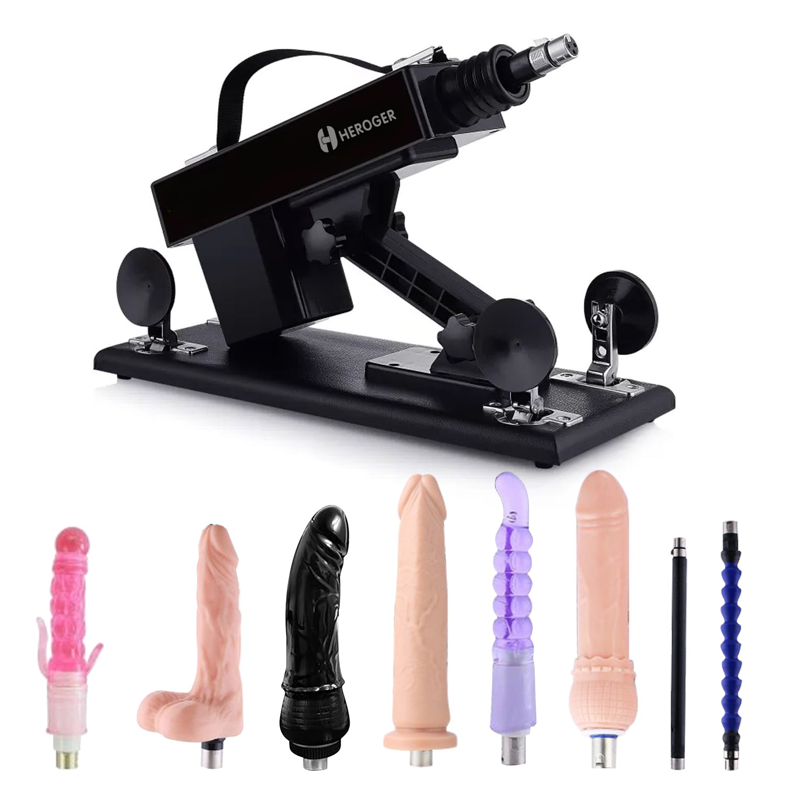 Includes both slender and thicker attachments to accommodate different experience levels. The large black attachment features a suction base for additional hands-free versatility.