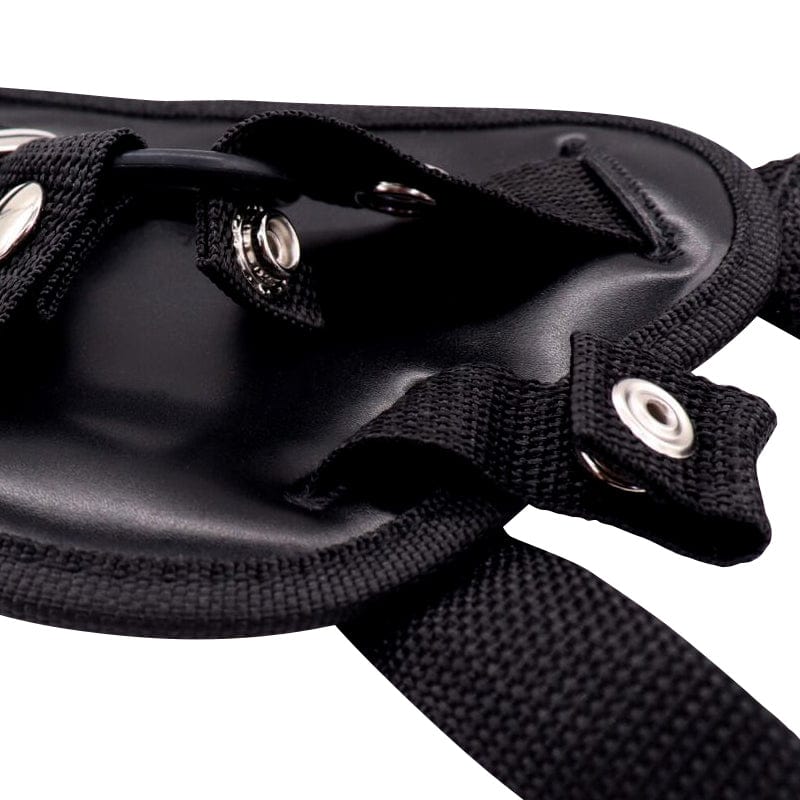 The harness is adjustable to fit various waist sizes and features a snap-button O-ring system. This allows you to easily swap out dildos or clean the components separately.
