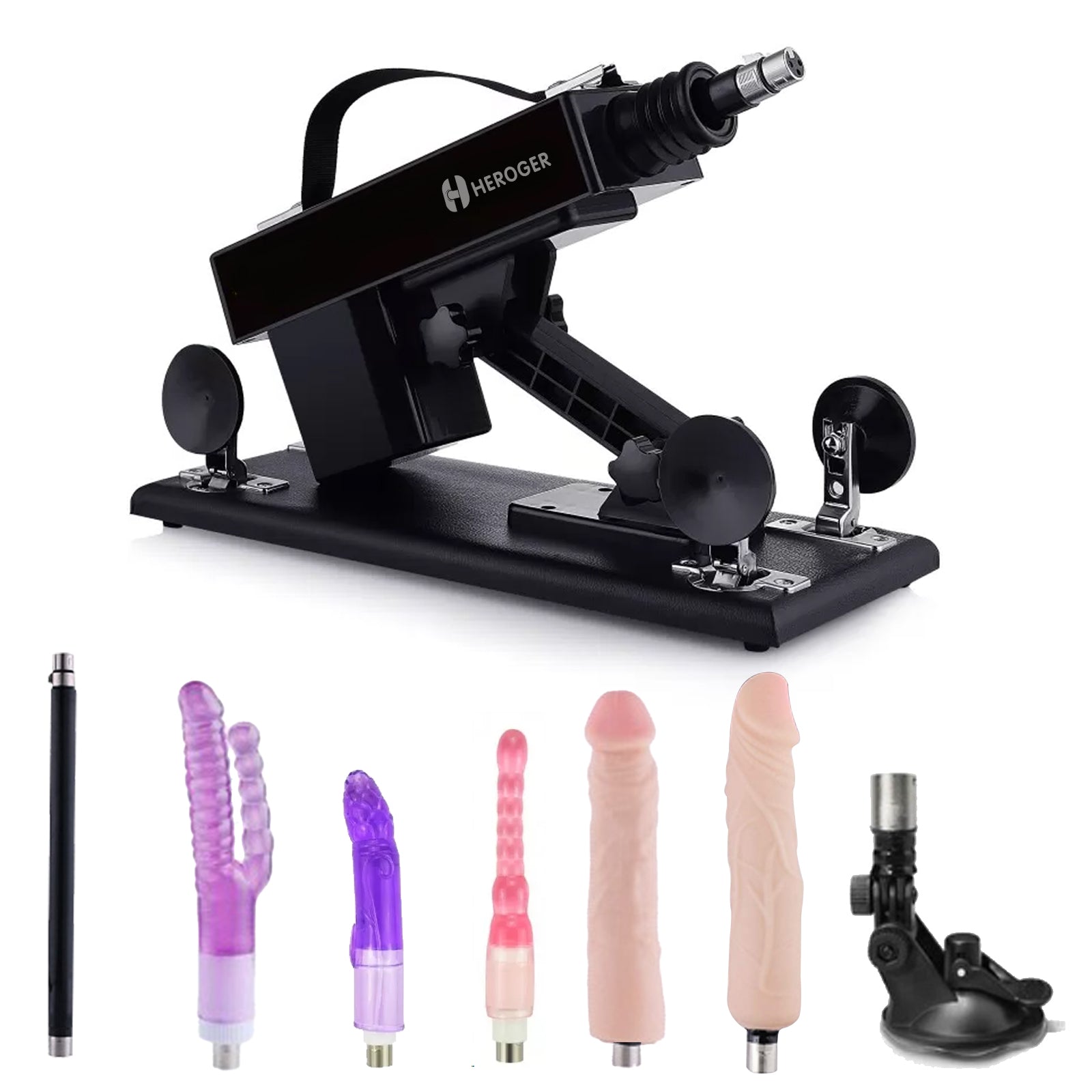 Includes both slender and thicker attachments to accommodate different experience levels. The large black attachment features a suction base for additional hands-free versatility.