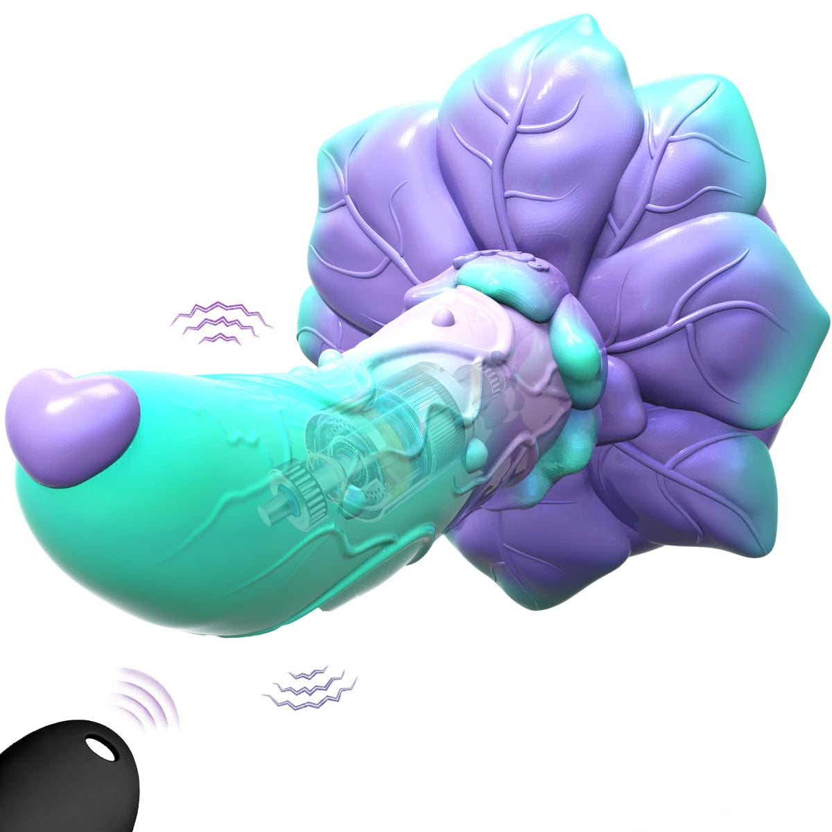 The exquisite rose-shaped base is not just for show; it functions as a strong suction cup that adheres to smooth, flat surfaces. This allows for hands-free riding in the shower (it's waterproof!) or on a chair, giving you leverage to enjoy the textured alien-style shaft.
